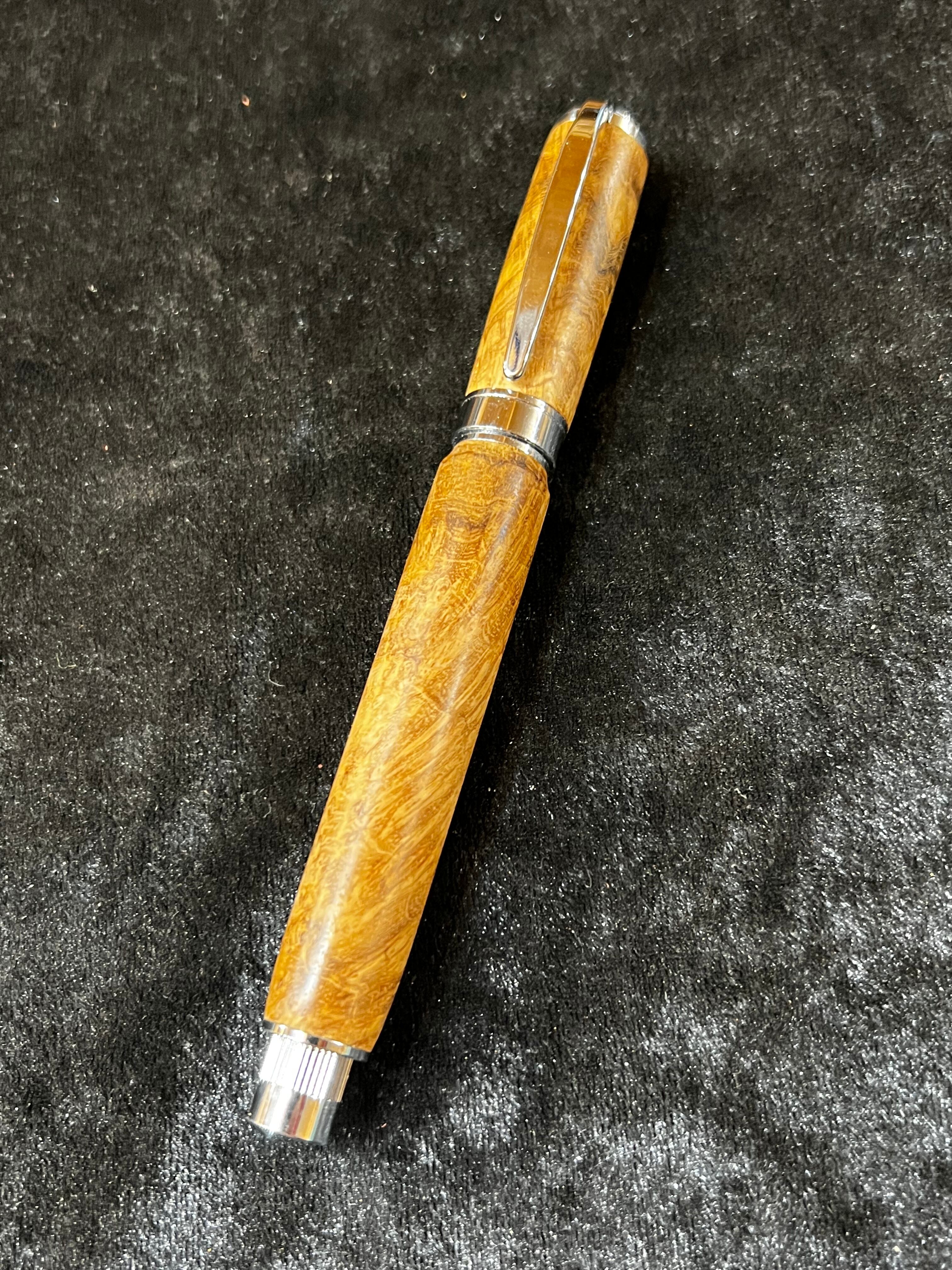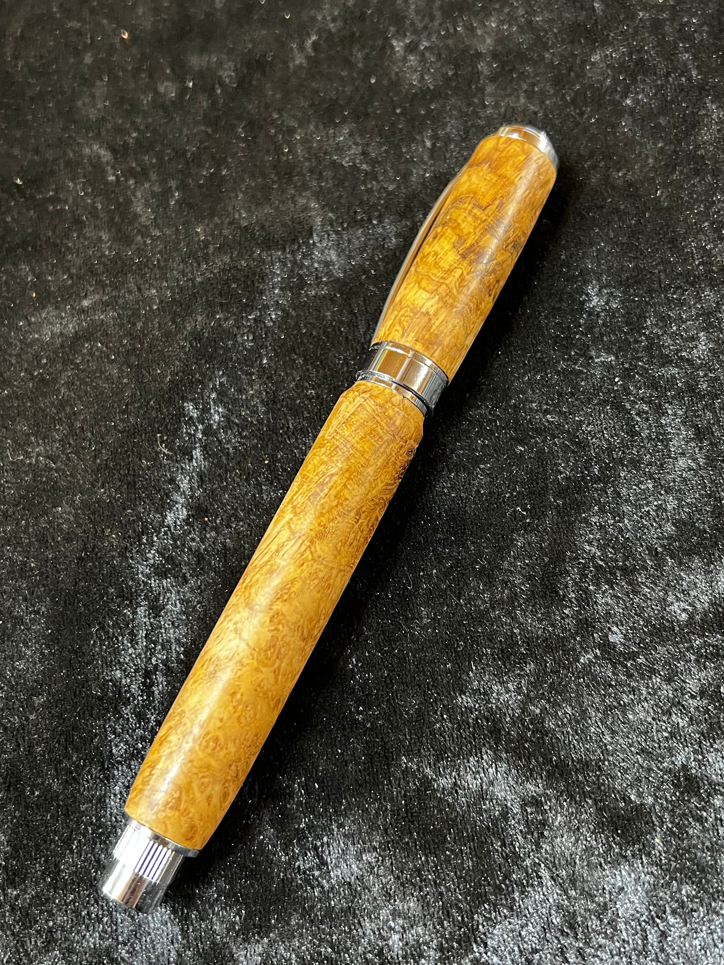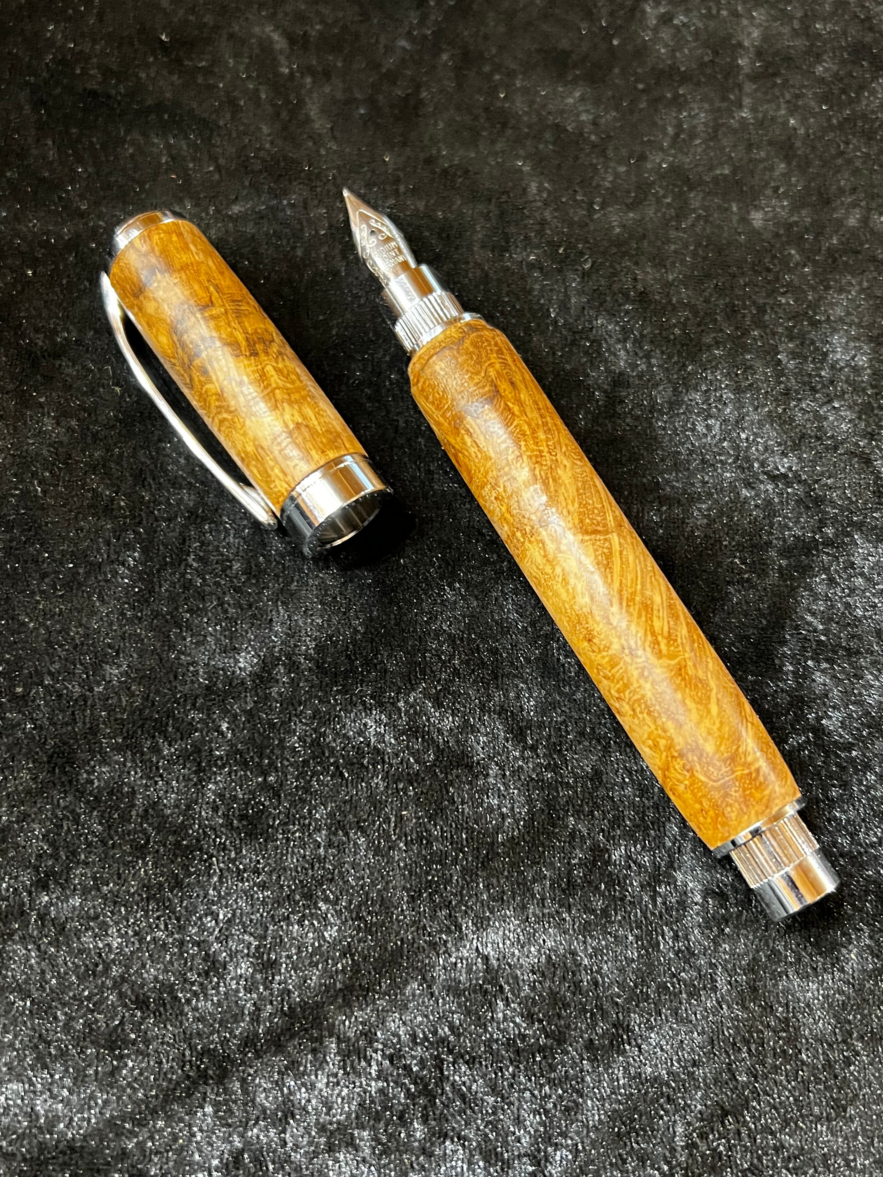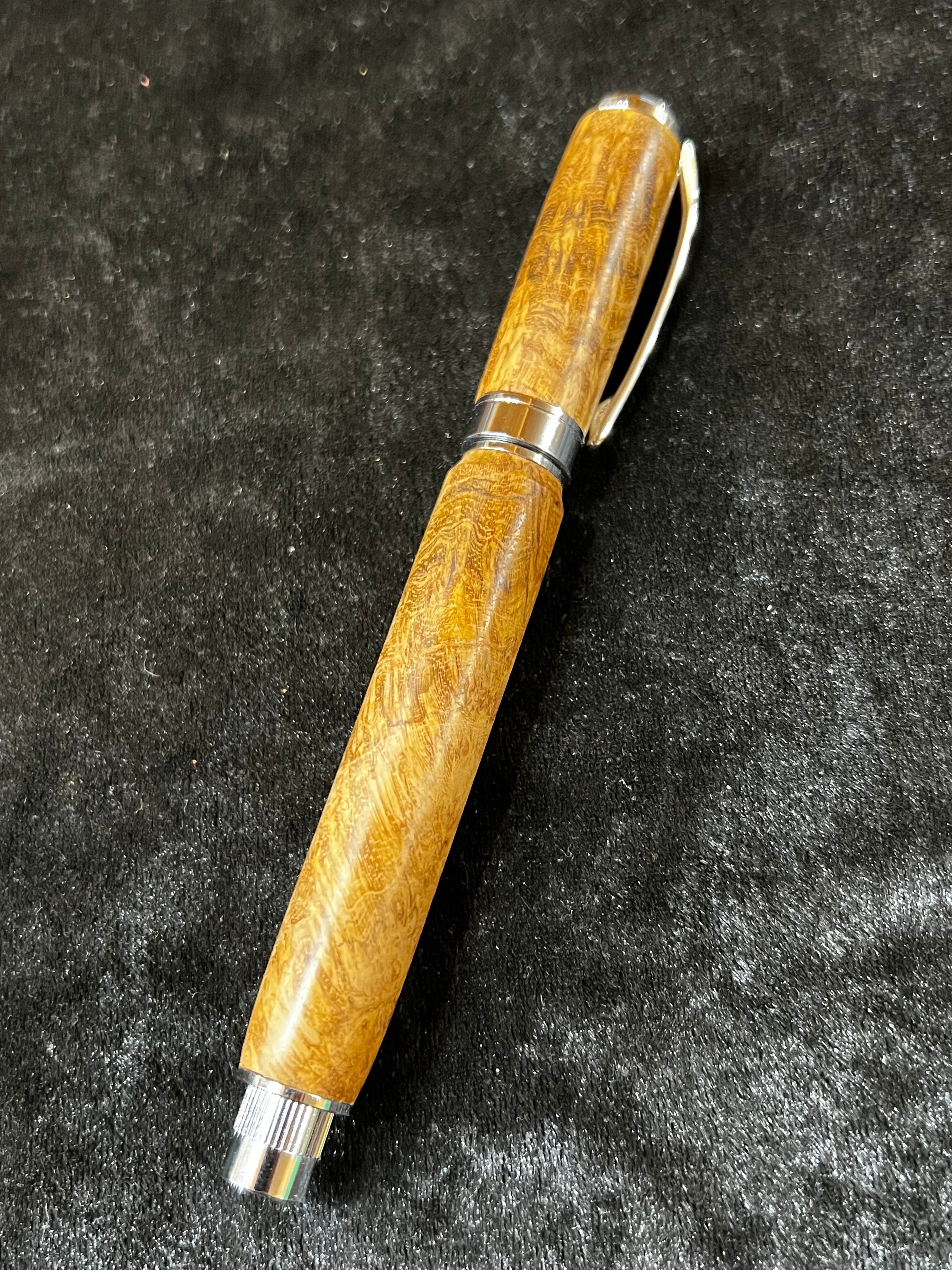 19チーク瘤 特上杢 木軸キャップ式万年筆
