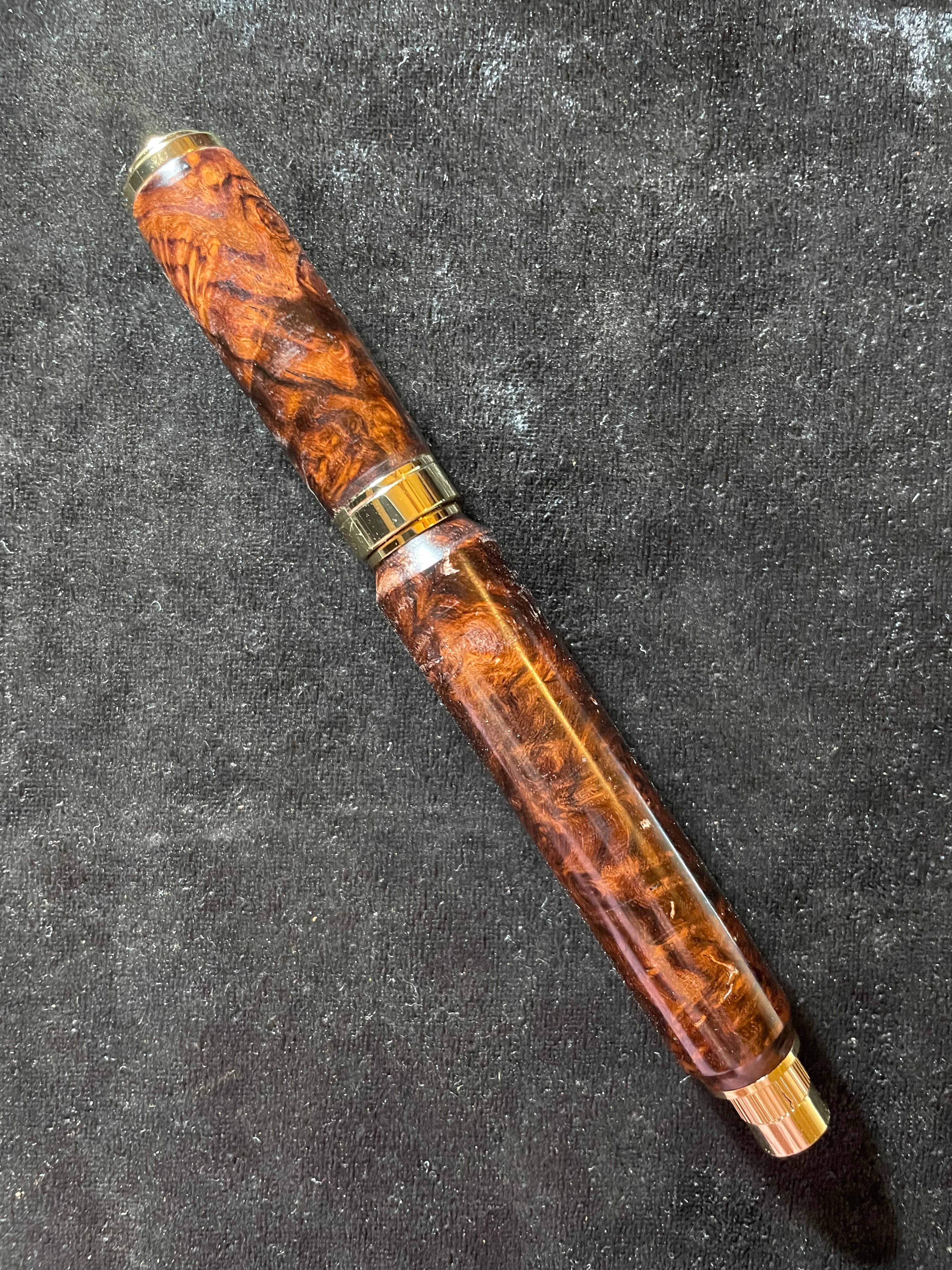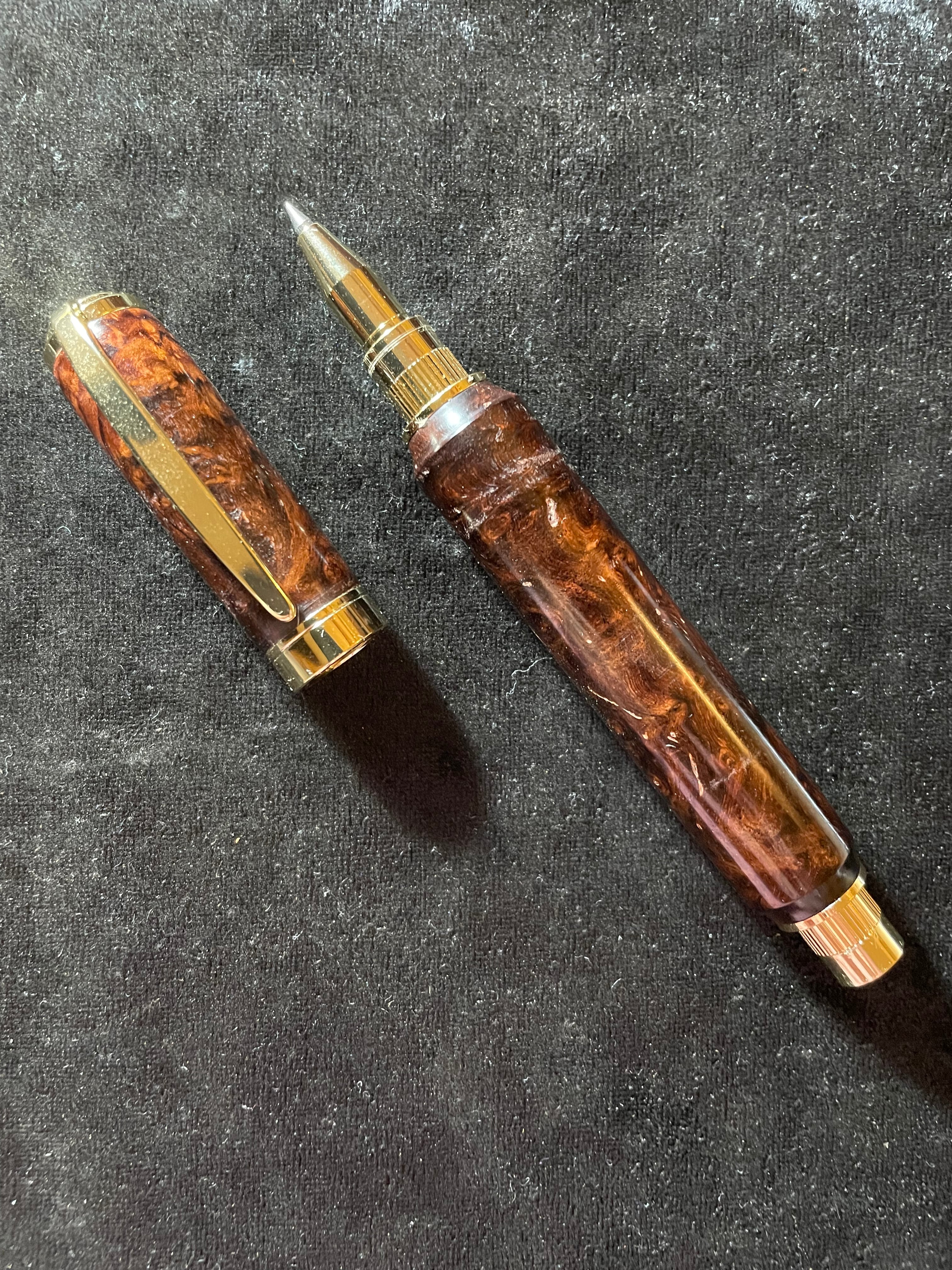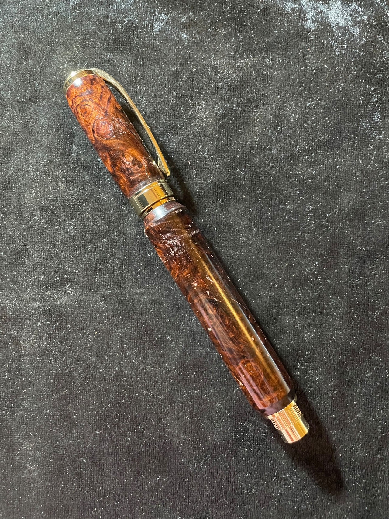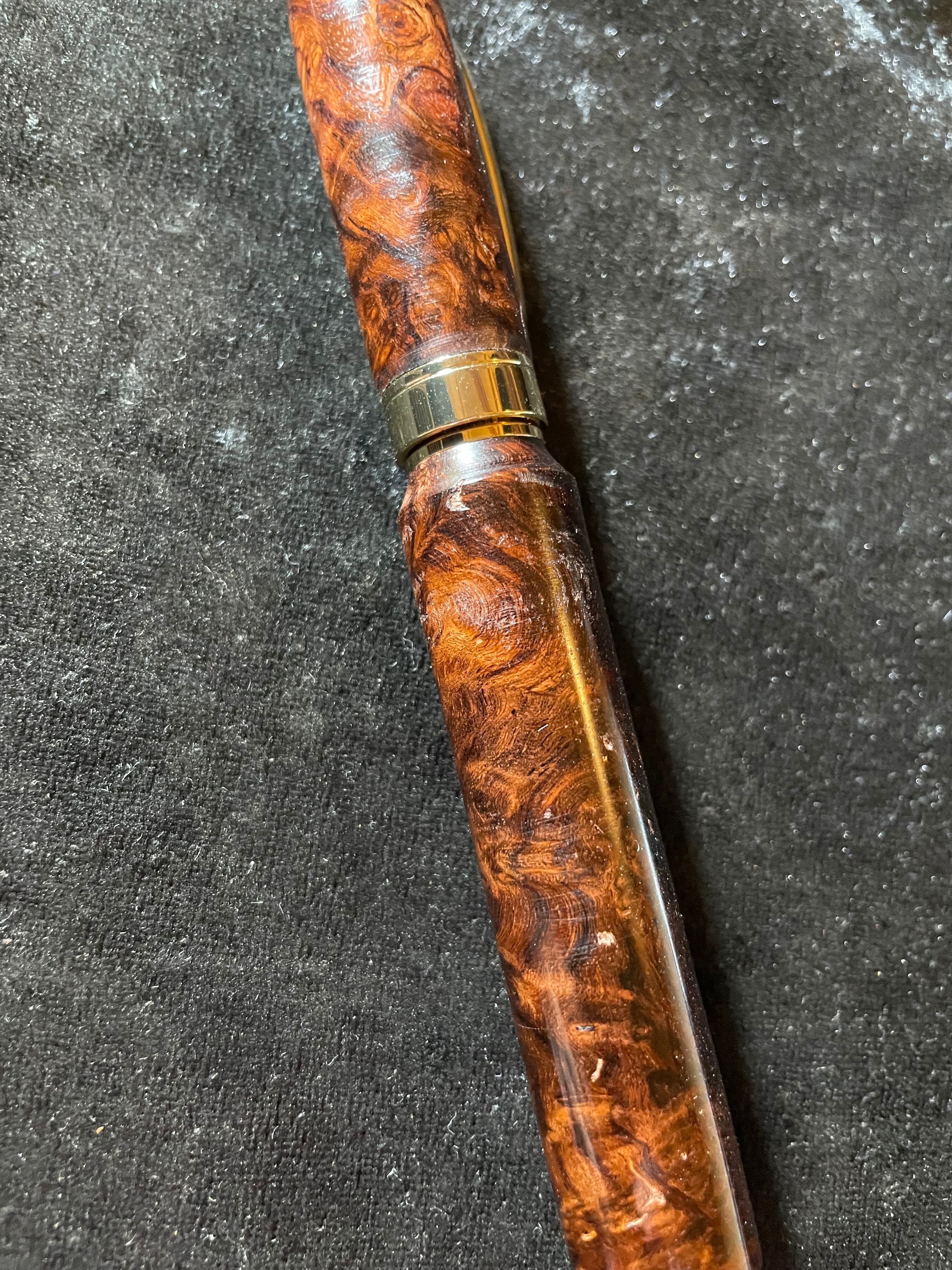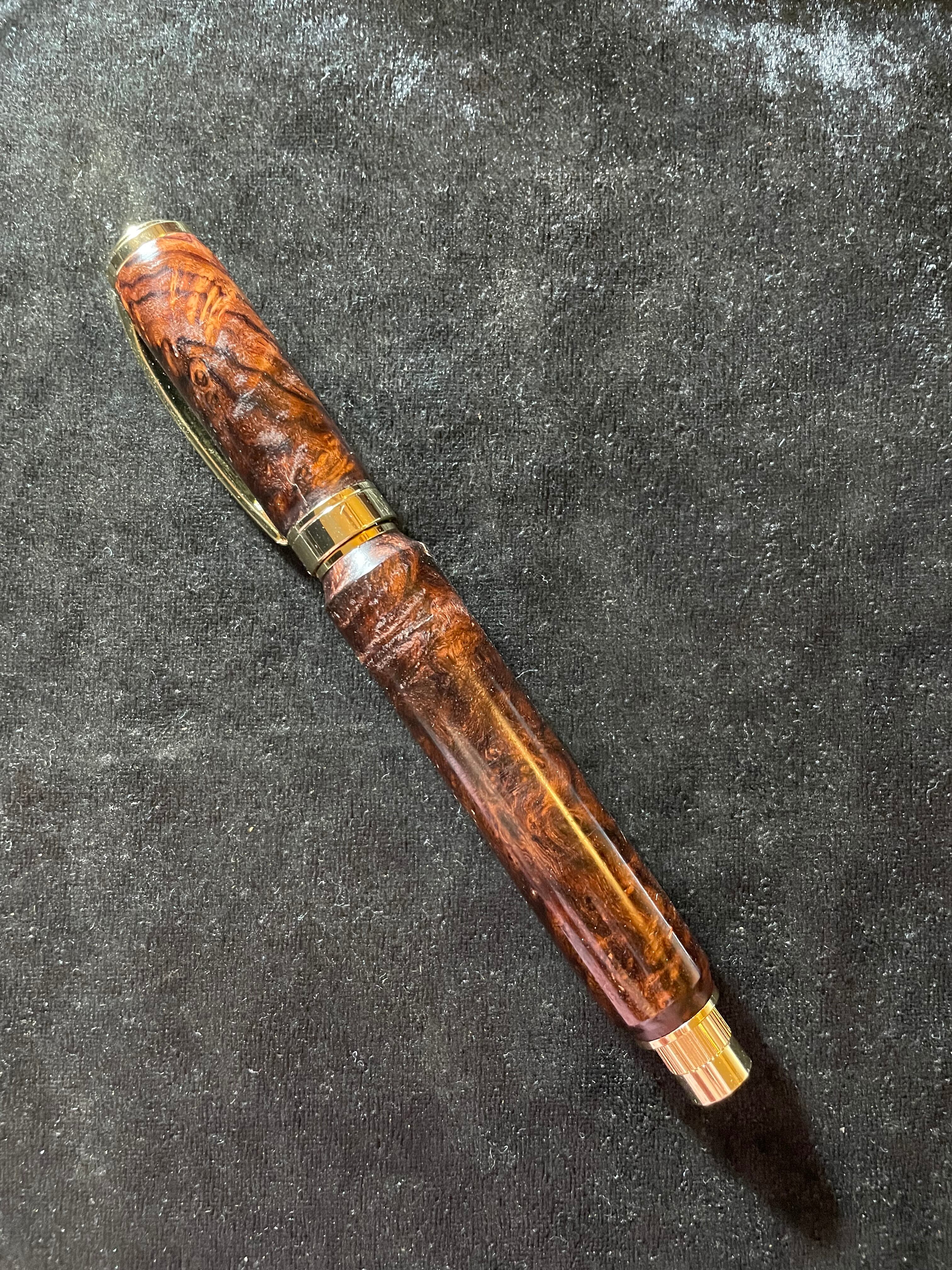 19ローズウッド瘤 特上杢 木軸キャップ式ボールペン やや傷、節あり