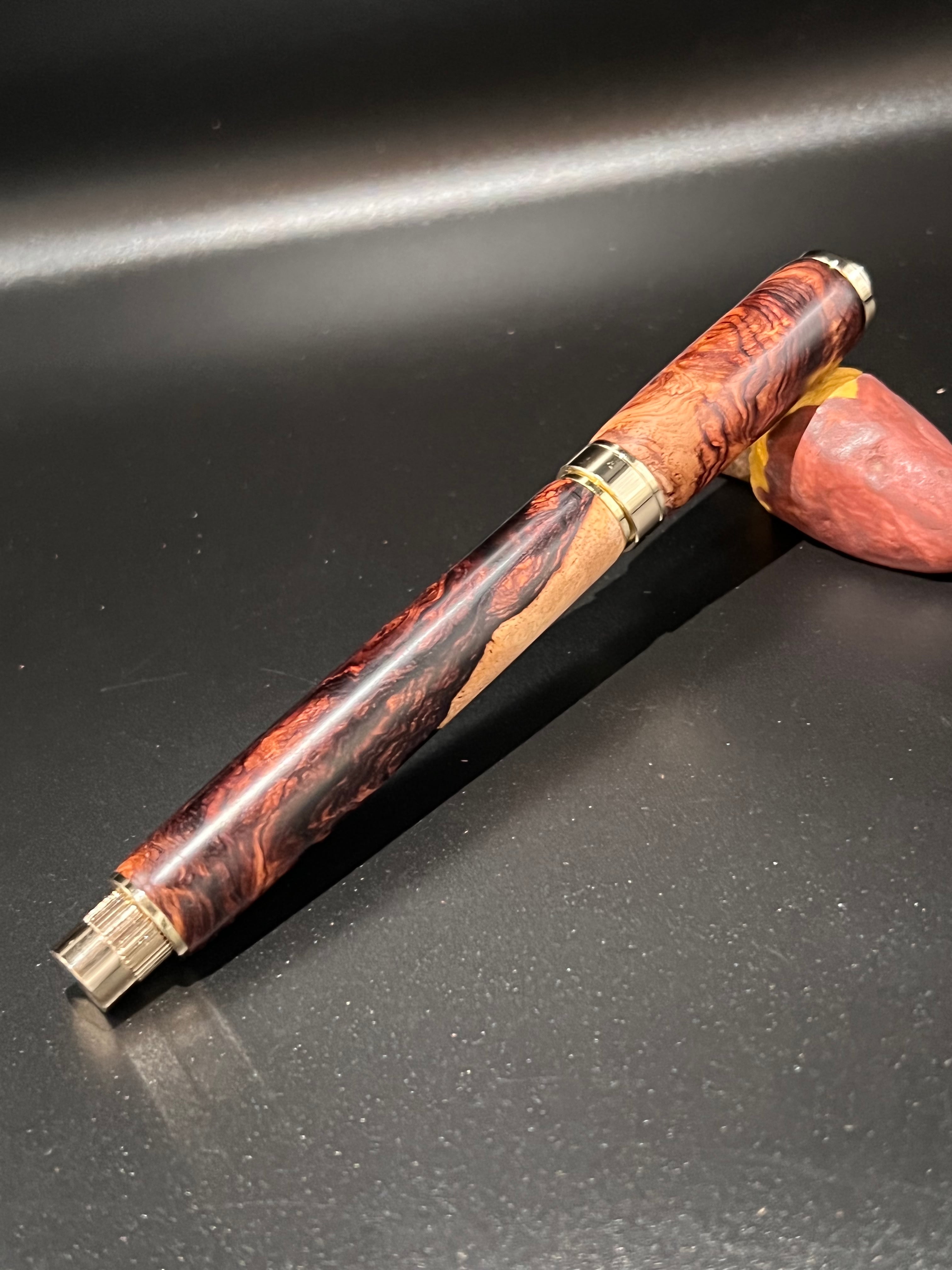 5 ローズウッド瘤 極上杢 木軸キャップ式万年筆