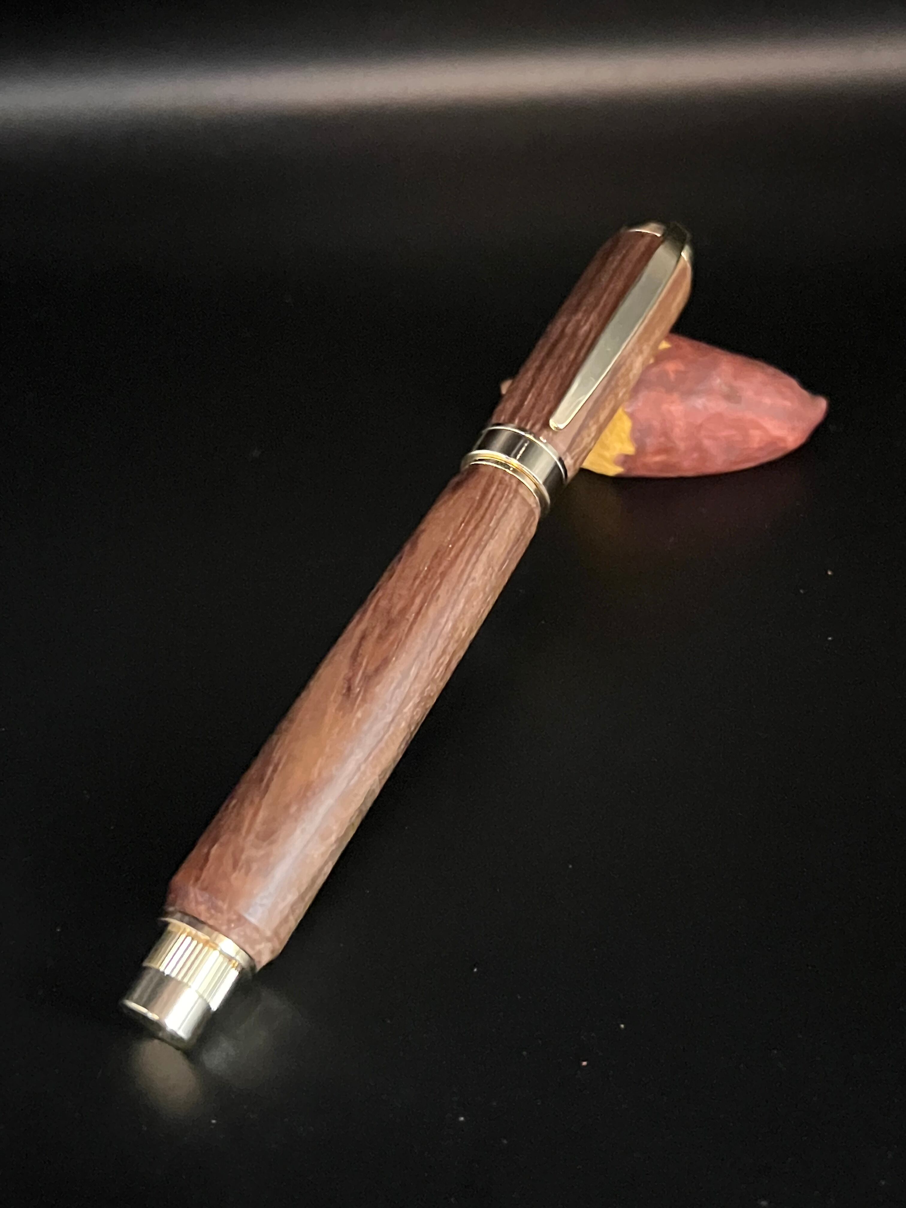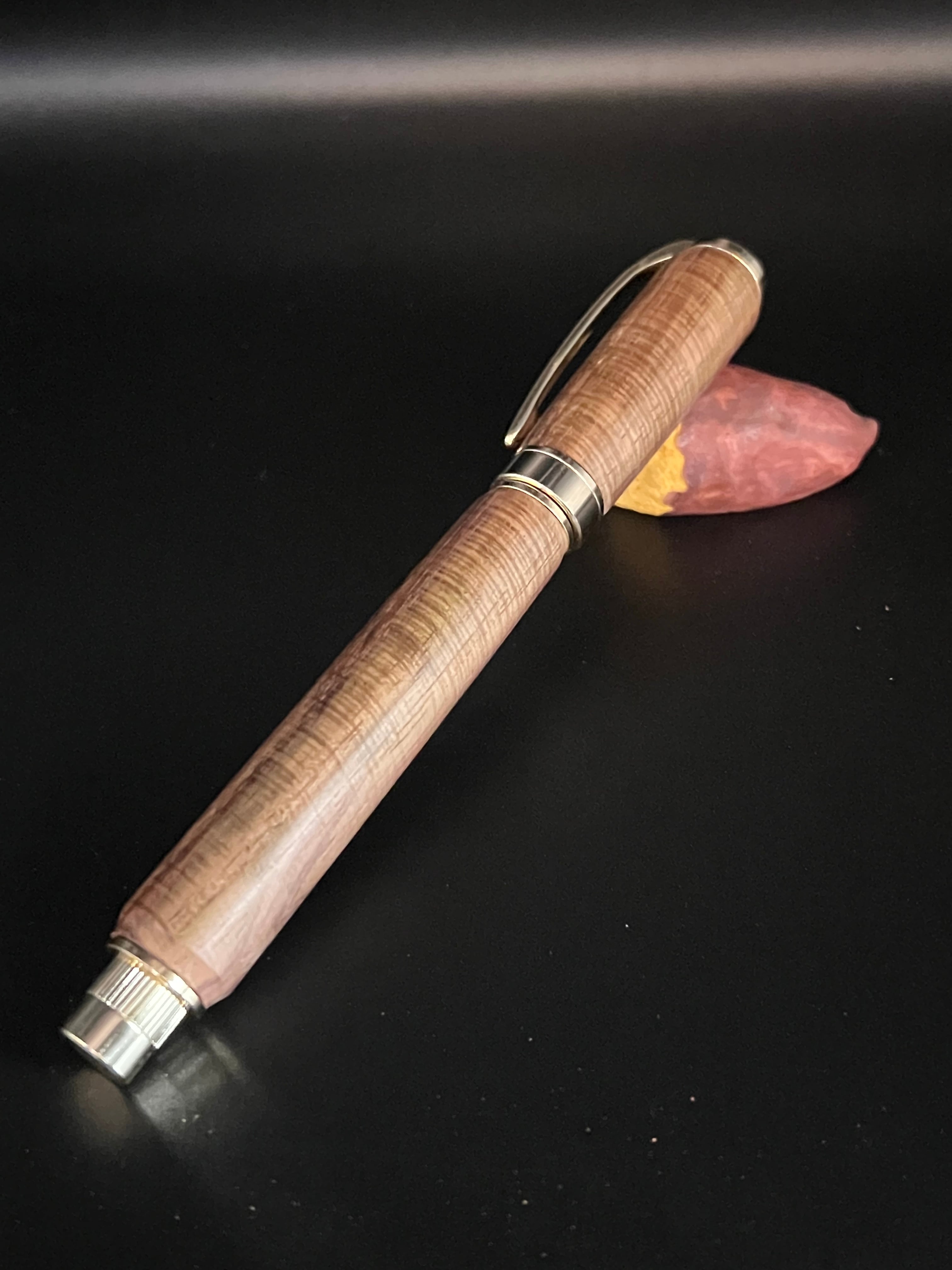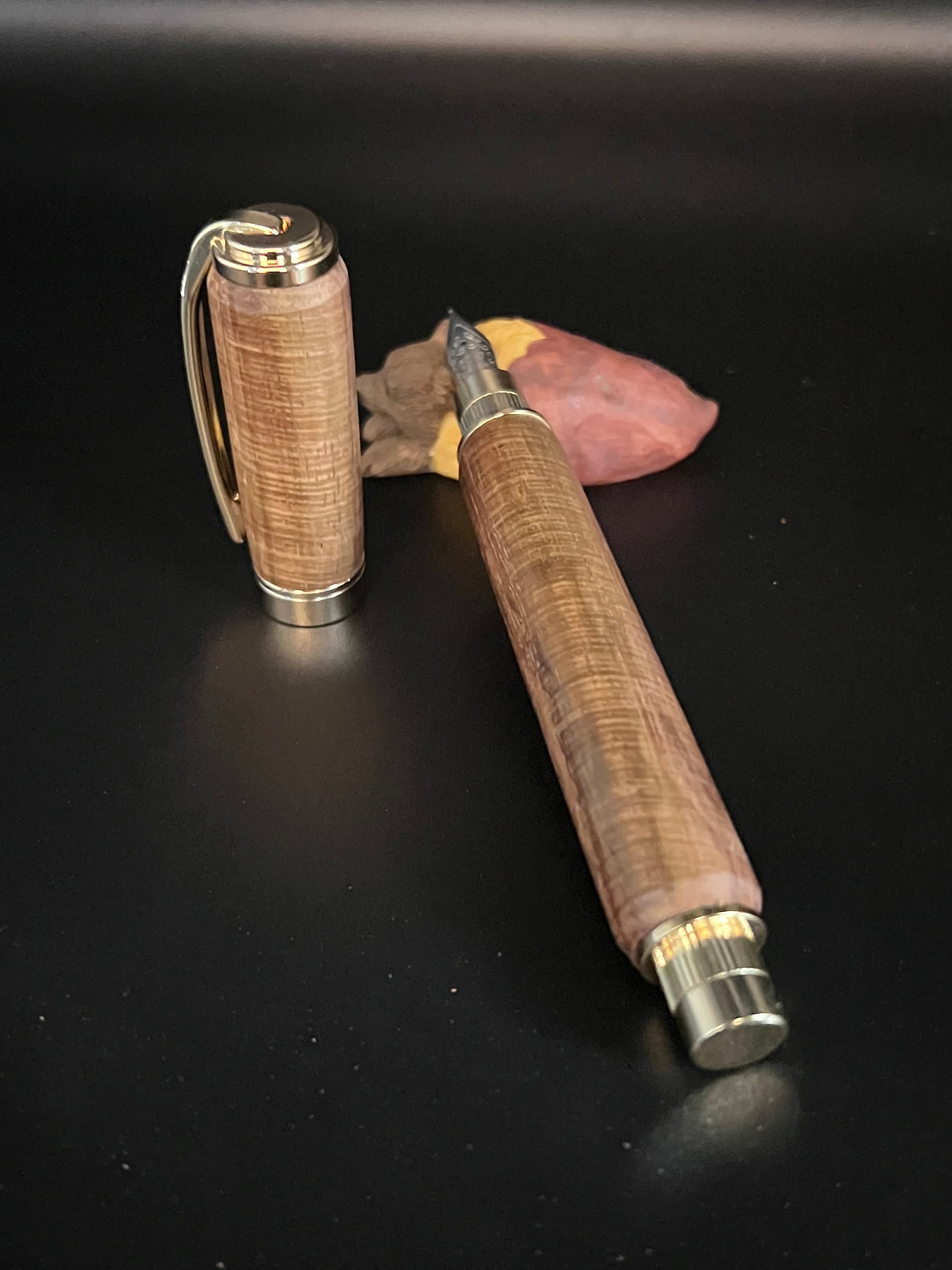 3 siameseサイアミースローズウッド 極上マイクロカーリー木軸キャップ式万年筆