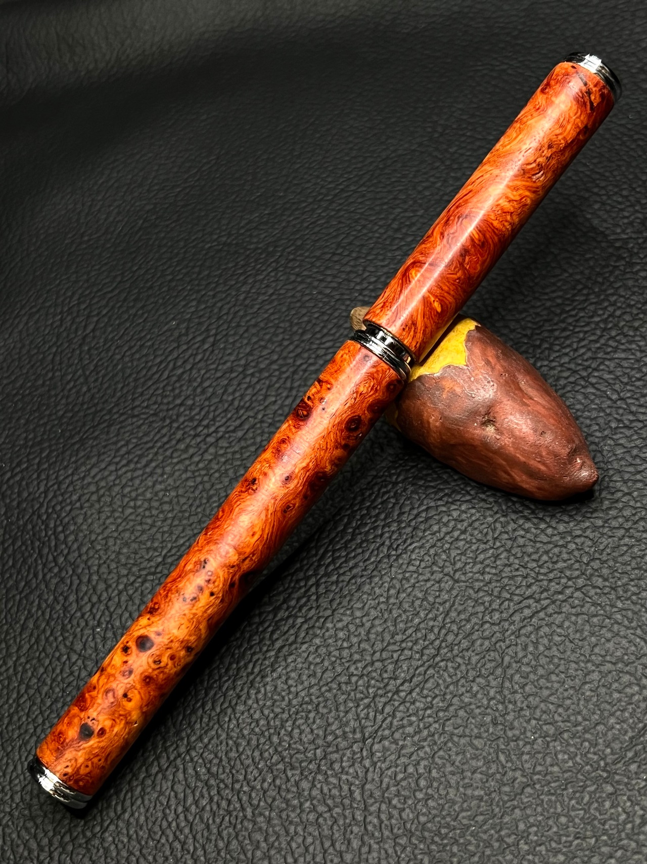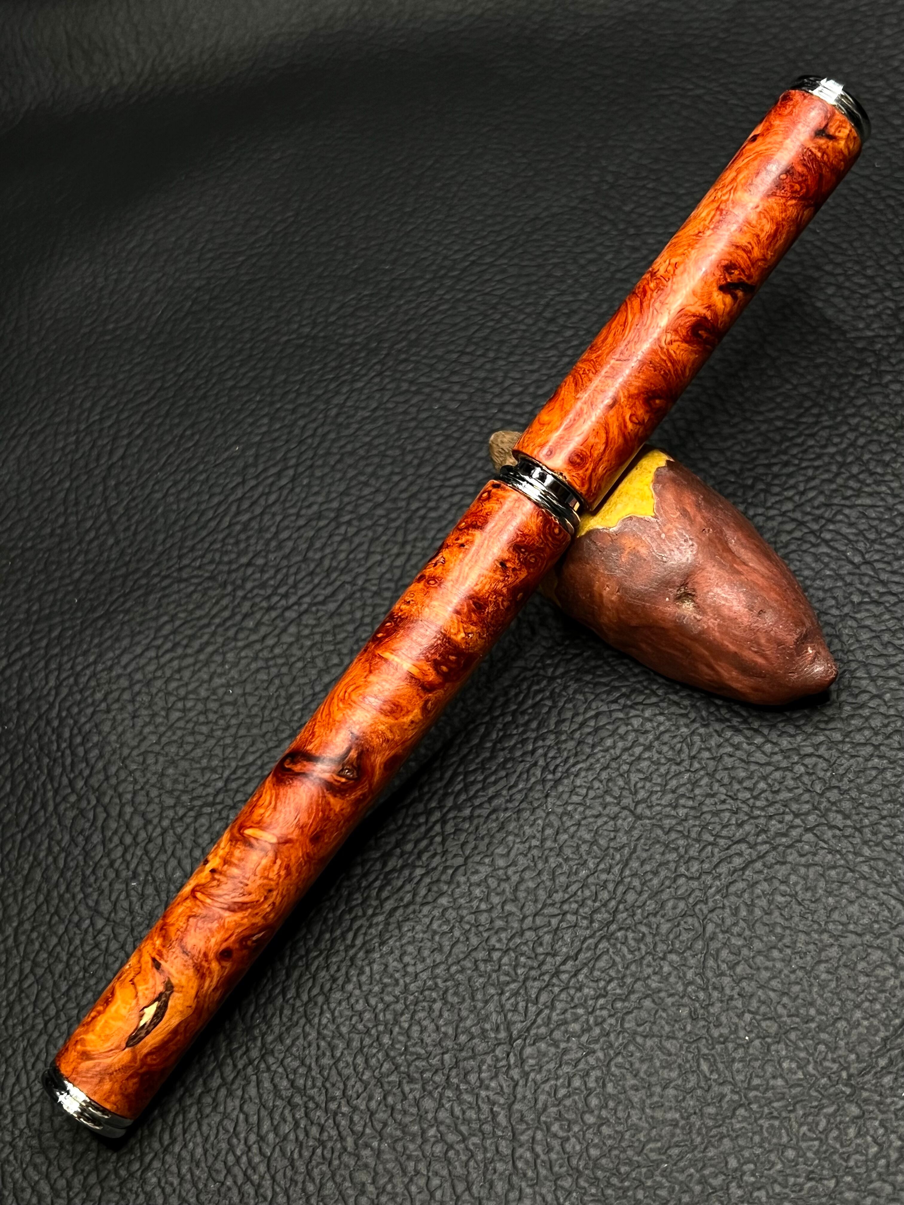 25 極上花梨瘤 キャップ式ボールペン節アリ キャップ少し短め