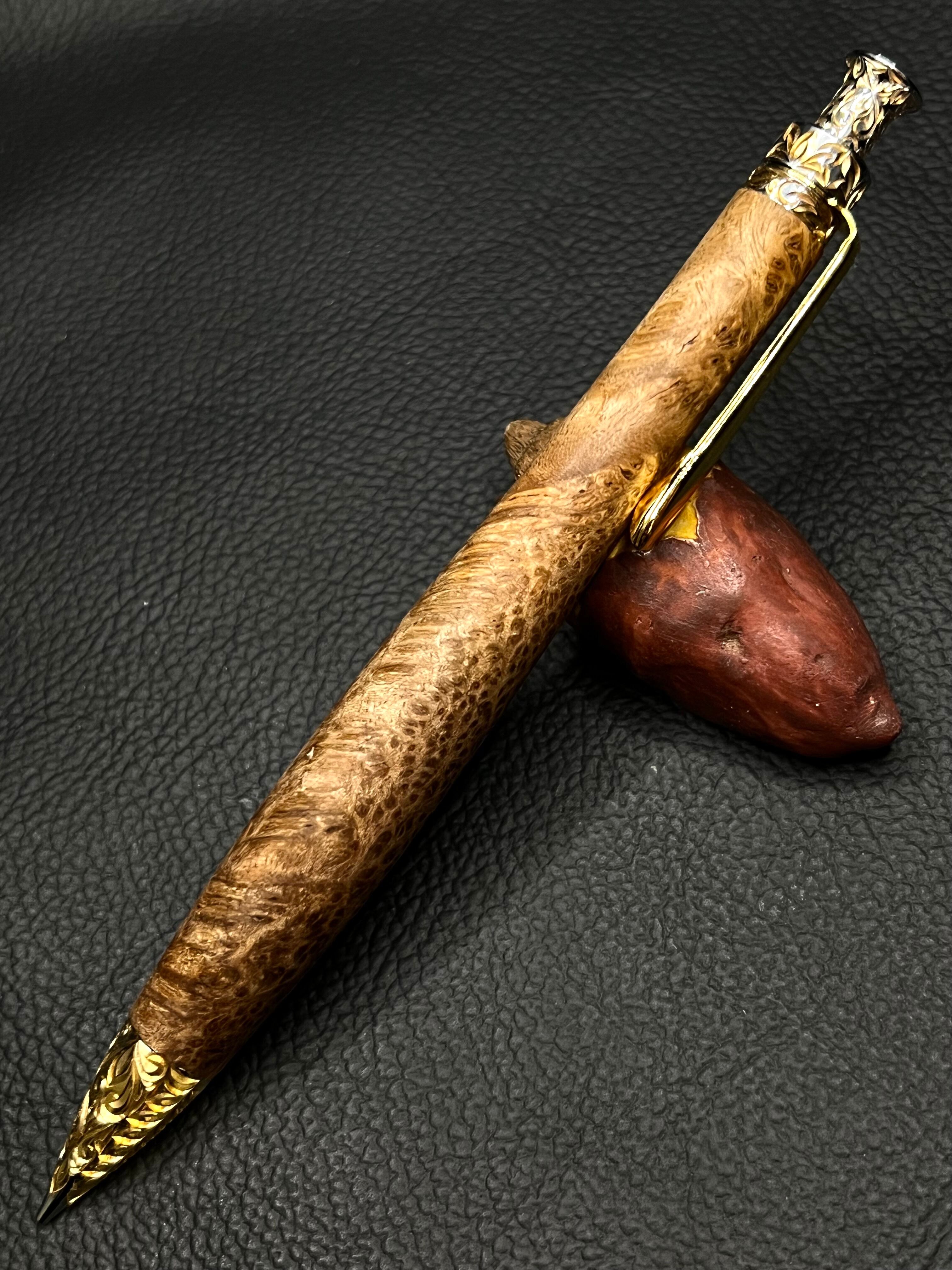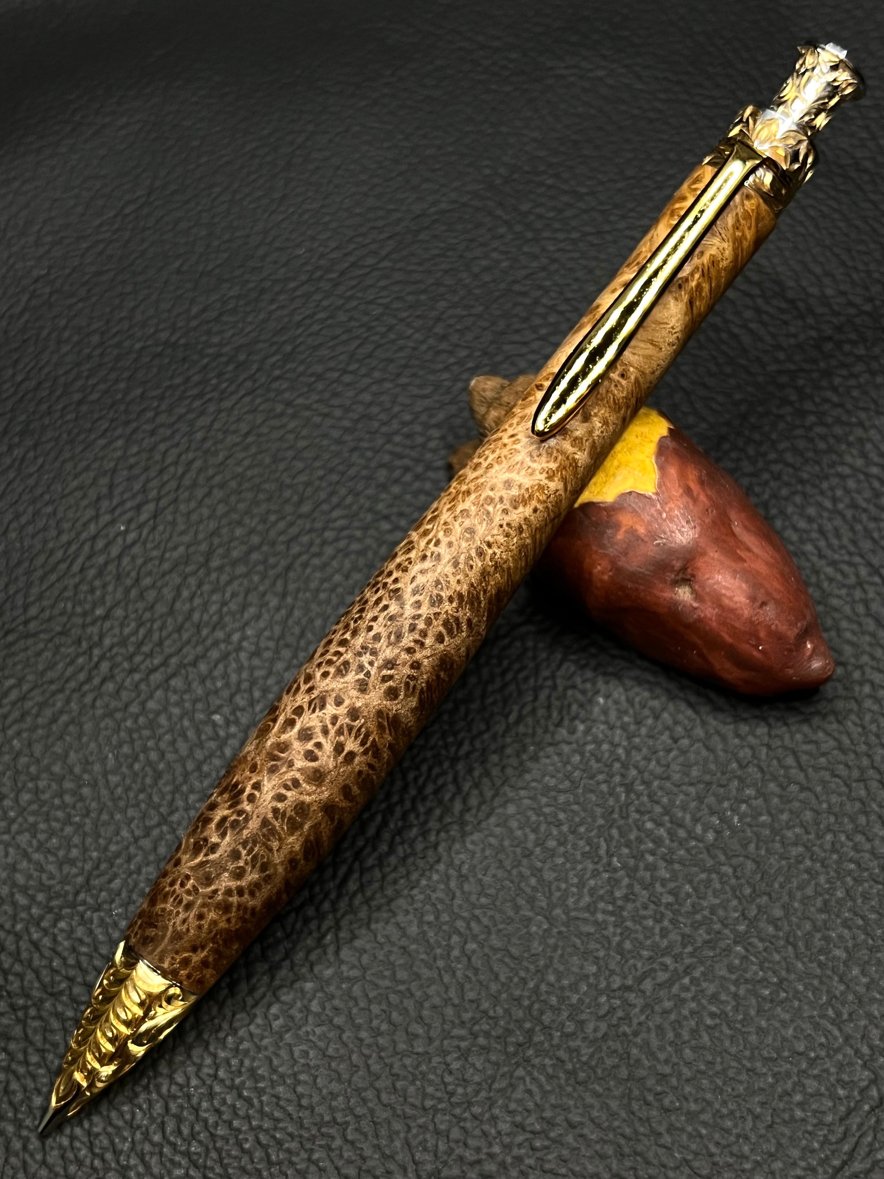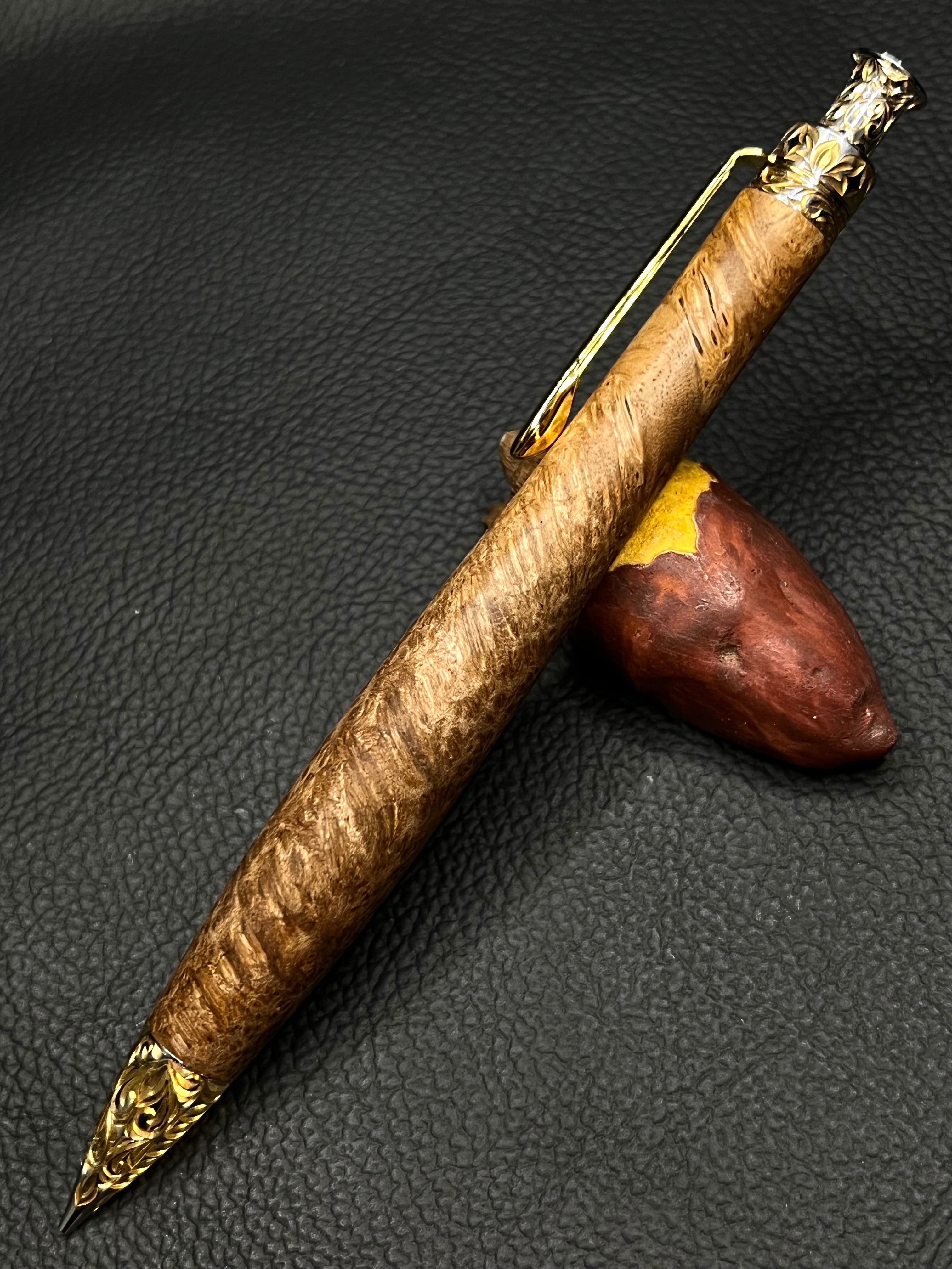 樹種 マーブルウッド マイクロバール 極上杢 彫金金具 50本限定シャープペンシル