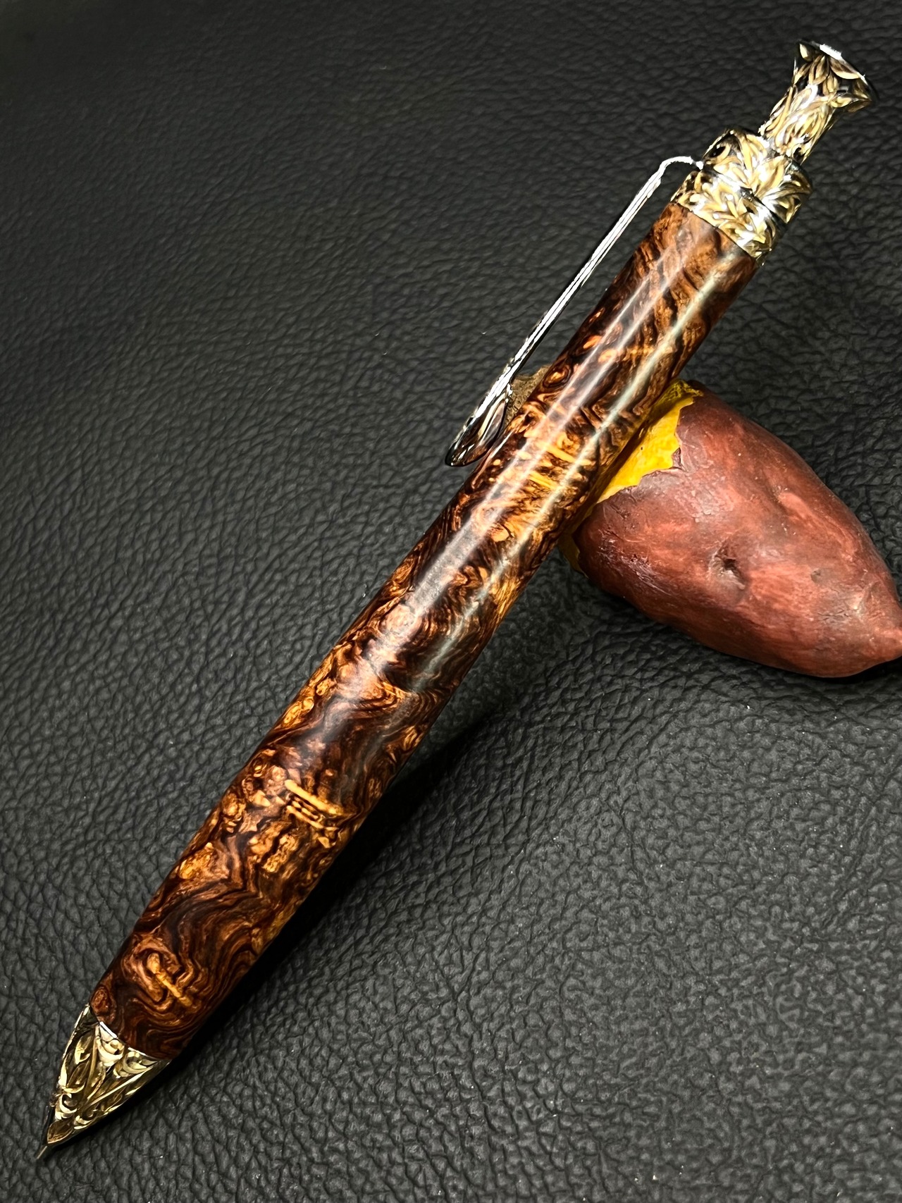 2 ローズウッド瘤 極上杢 彫金金具