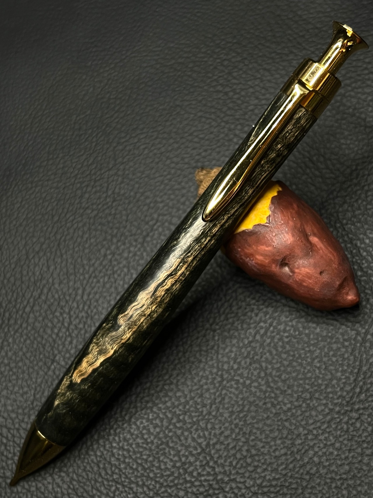 樹種 栃スタビライズドウッド 極上縮み杢 ブラック 0.5mmゴールド金具