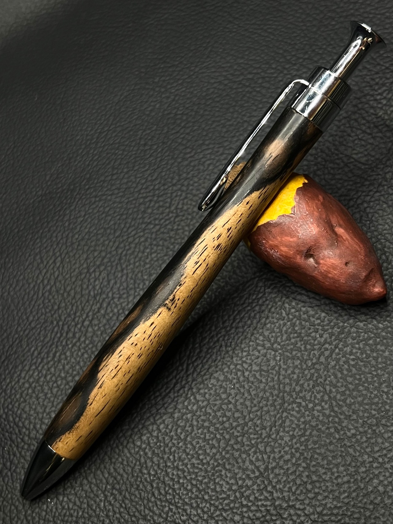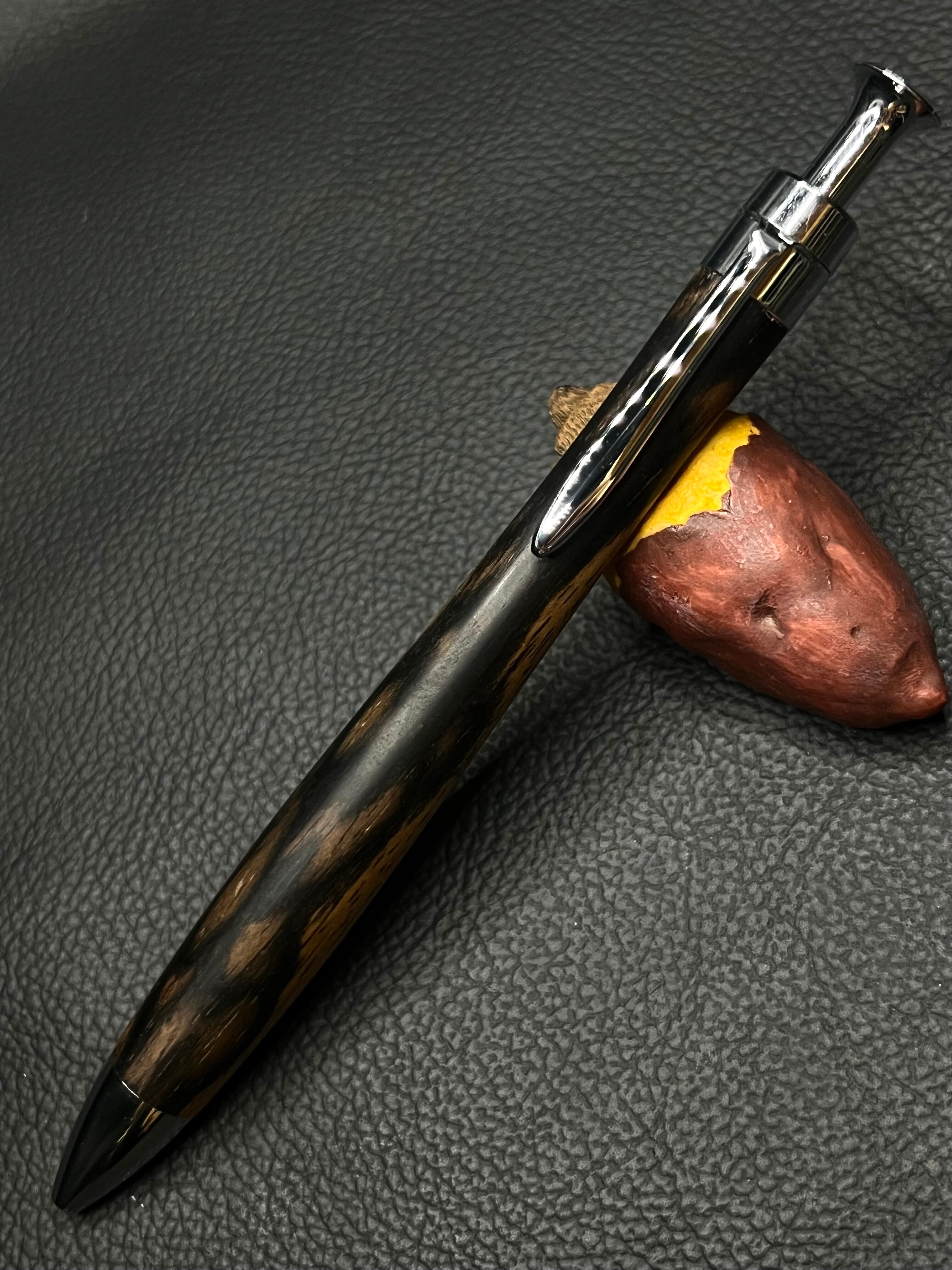 樹種 黒柿 縮み杢 シルバー金具ボールペン