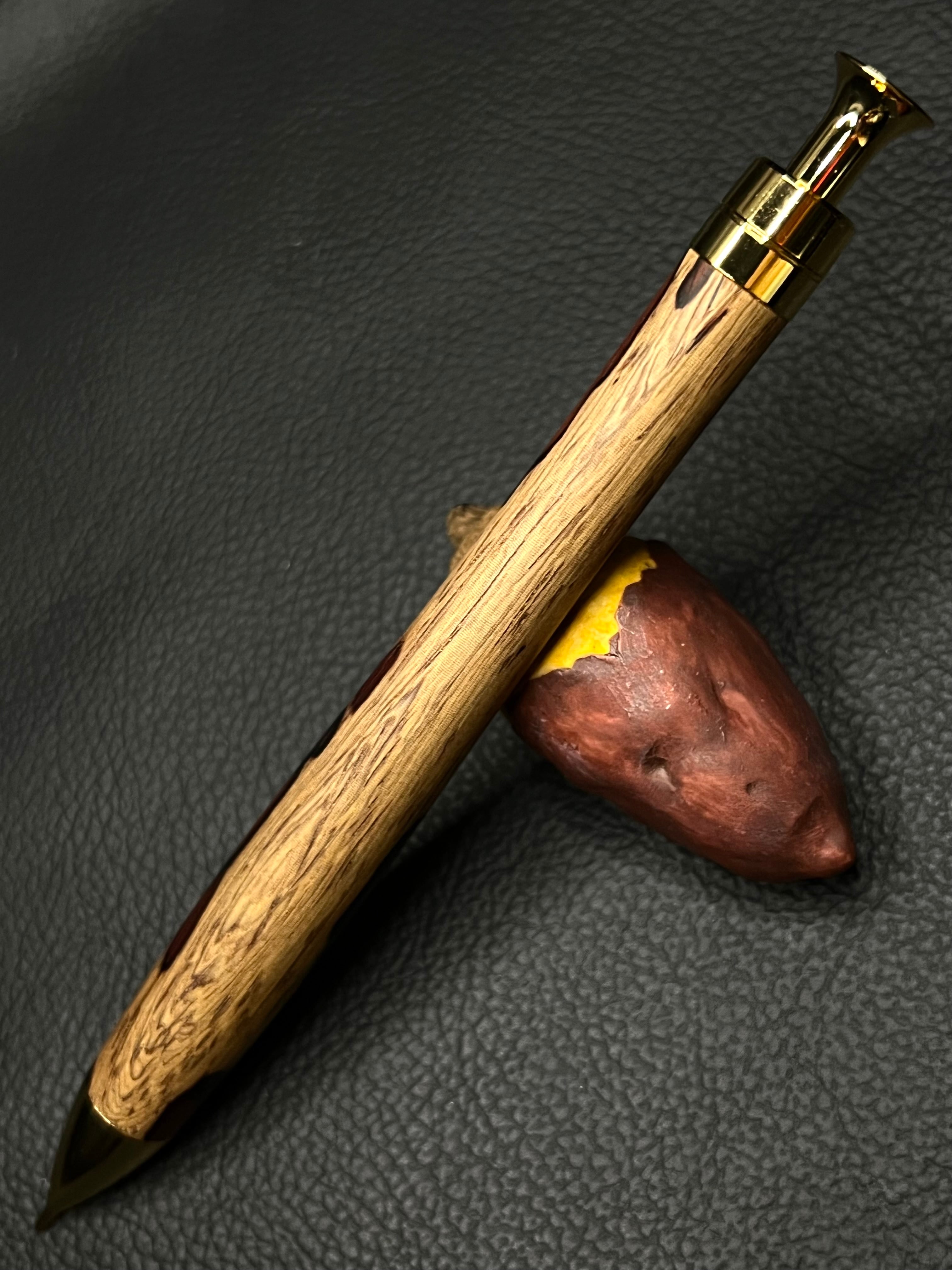 樹種 孔雀チンチャン 極上杢 ゴールド オリジナル芯ケース付き